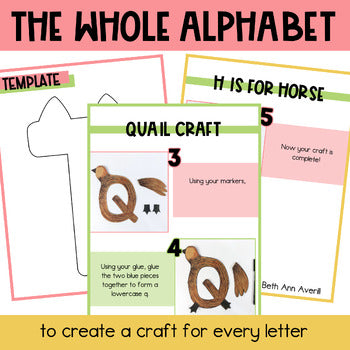With minimal prep and a one-class completion time, these projects are perfect for letter-of-the-week lessons, alphabet bulletin boards, or center activities.