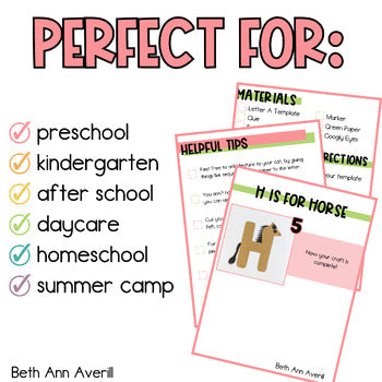 - Preschool teachers looking for a fun and educational craft activity that focuses on fine motor skills, creativity, and the alphabet.