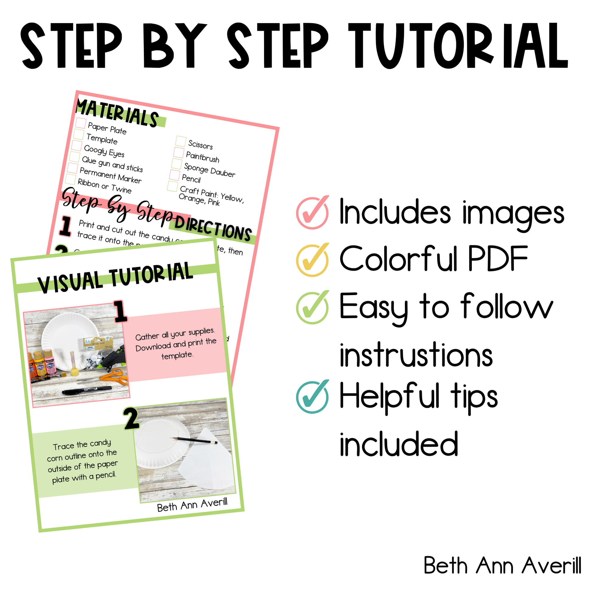 - A PDF with clear, step-by-step visual instructions for creating a candy corn character from a paper plate