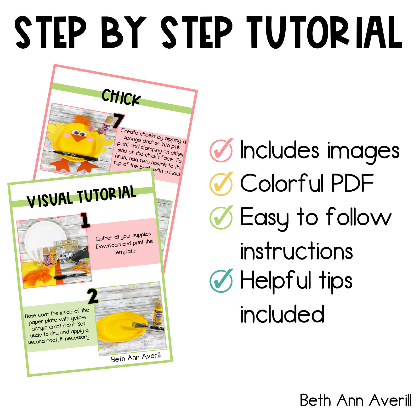 A PDF with clear, step by step visual instructions for creating a cute chick design from a paper plate