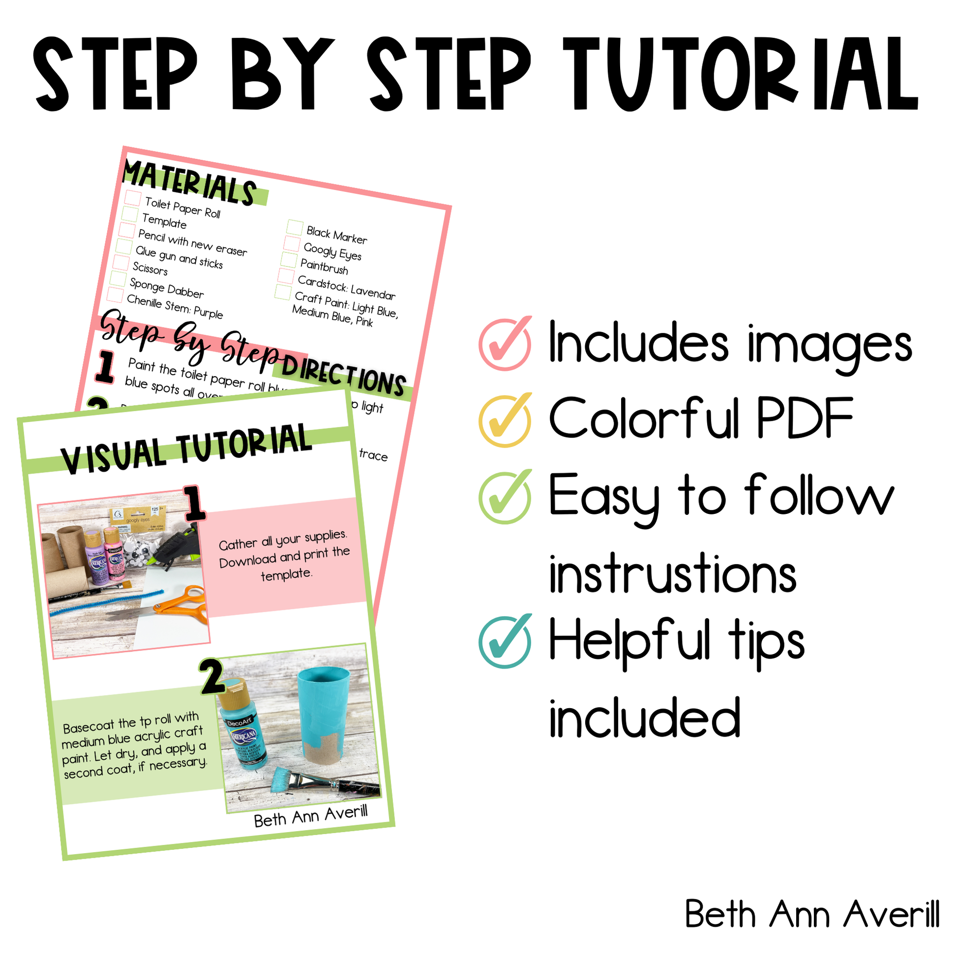 A PDF with clear, step-by-step visual instructions for creating a dragonfly character from a toilet paper roll