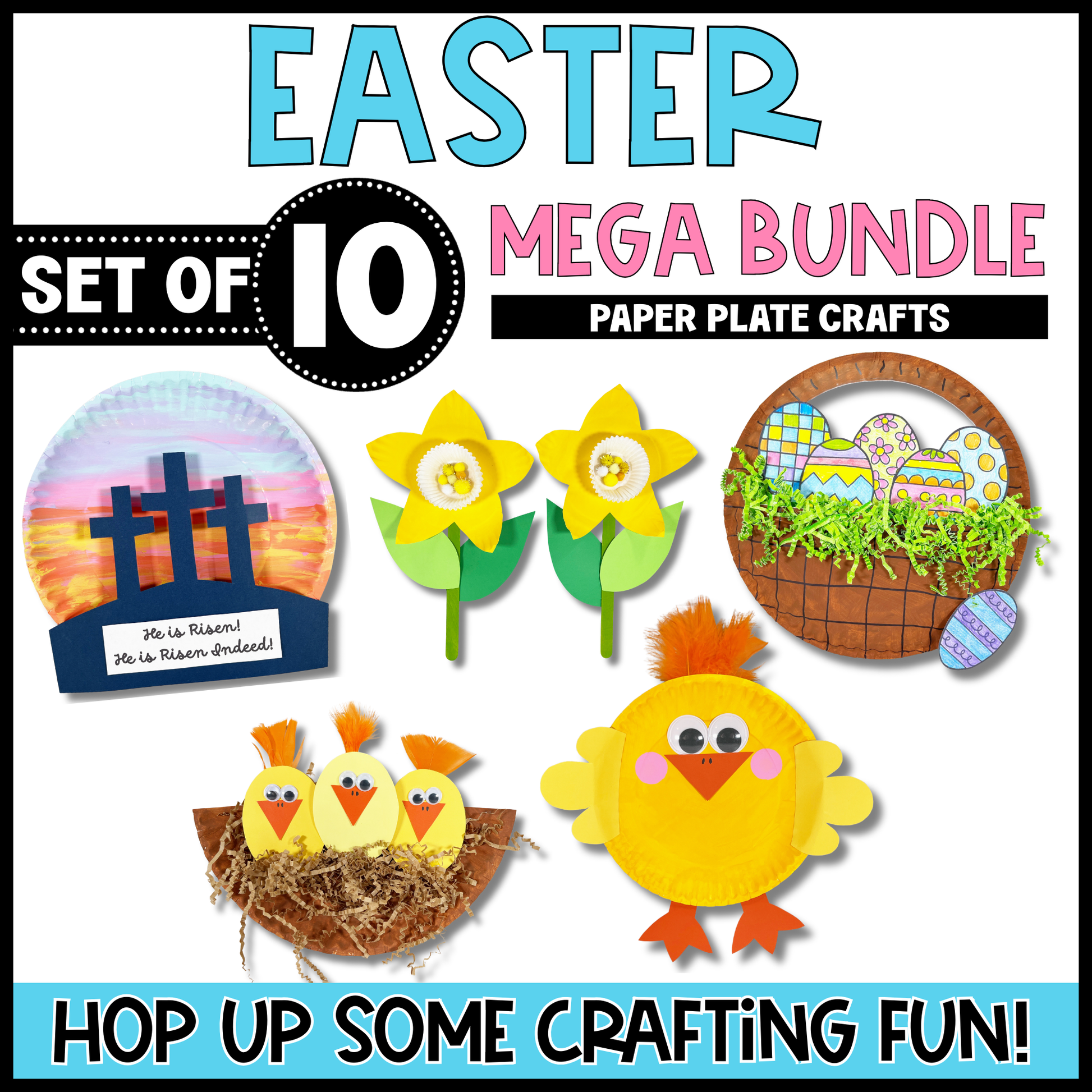 Easter Paper Plate Crafts Bundle. Make Easter and spring celebrations extra fun with this bundle of 10 adorable Easter Paper Plate Crafts. These engaging crafts are perfect for classroom celebrations, spring centers, homeschool activities, or bulletin board displays. Each craft uses a simple paper plate and printable template pieces, making preparation quick and easy for teachers while still giving students a fun and creative project they will love. Crafts Included: Carrot, Daffodils, Sheep, Bunny, Bunny Butt, Chick, Chicks in a Nest, Easter Basket, Egg and Chick, He is Risen. What Is Included With Each Craft: Printable template pieces, step by step teacher directions, photo example of the completed craft. Why Teachers Love This Bundle: Low prep print and go crafts, perfect for Easter parties and spring celebrations, encourages creativity and fine motor skills, great for bulletin boards and hallway displays, a variety of fun Easter themed projects students will love. Buy the bundle and save compared to purchasing each craft individually.
