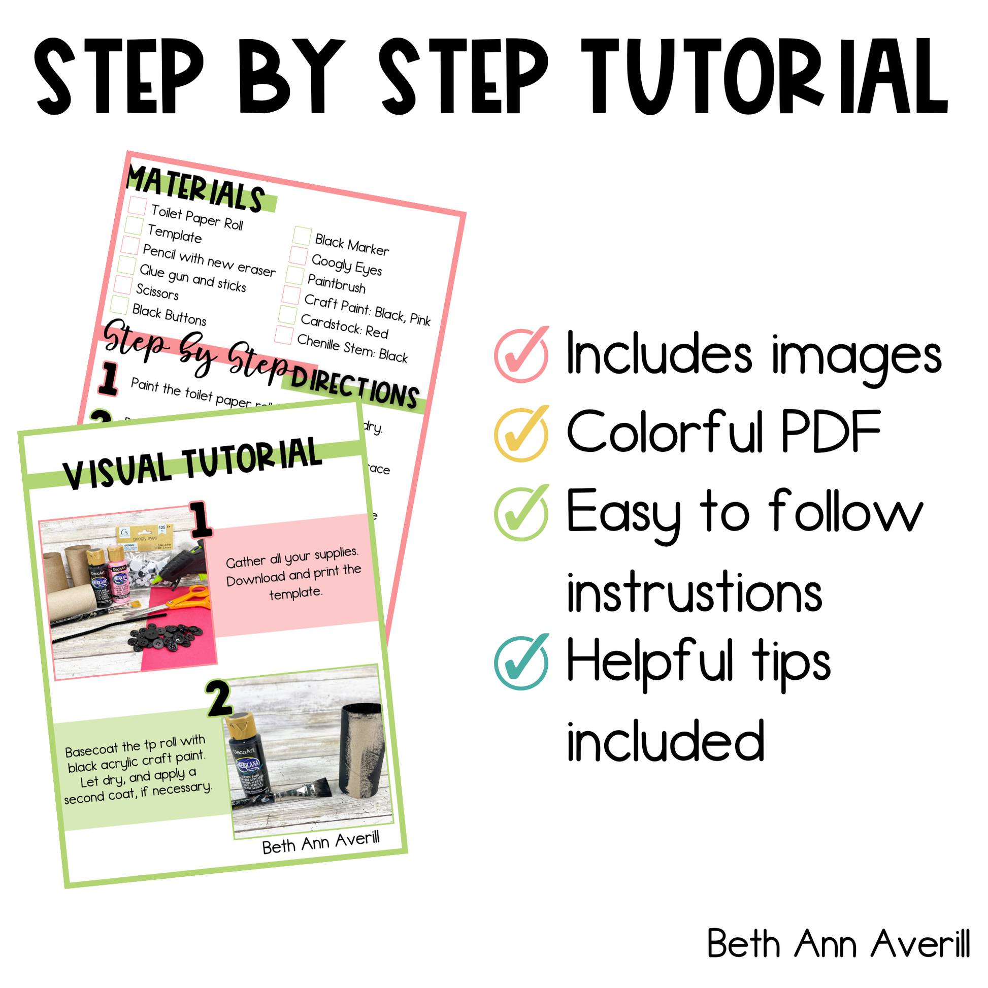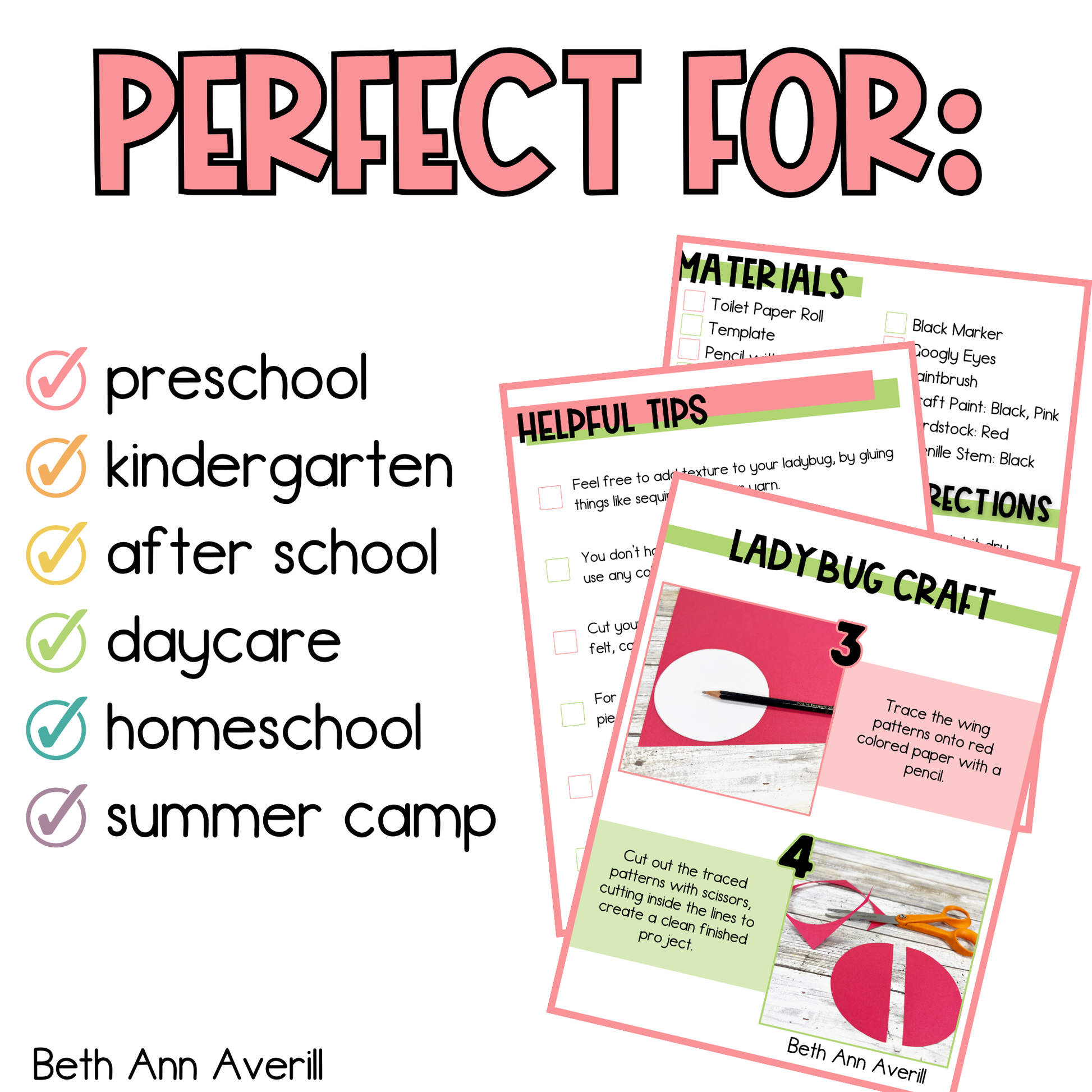 A PDF with clear, step-by-step visual instructions for creating a ladybug character from a toilet paper roll