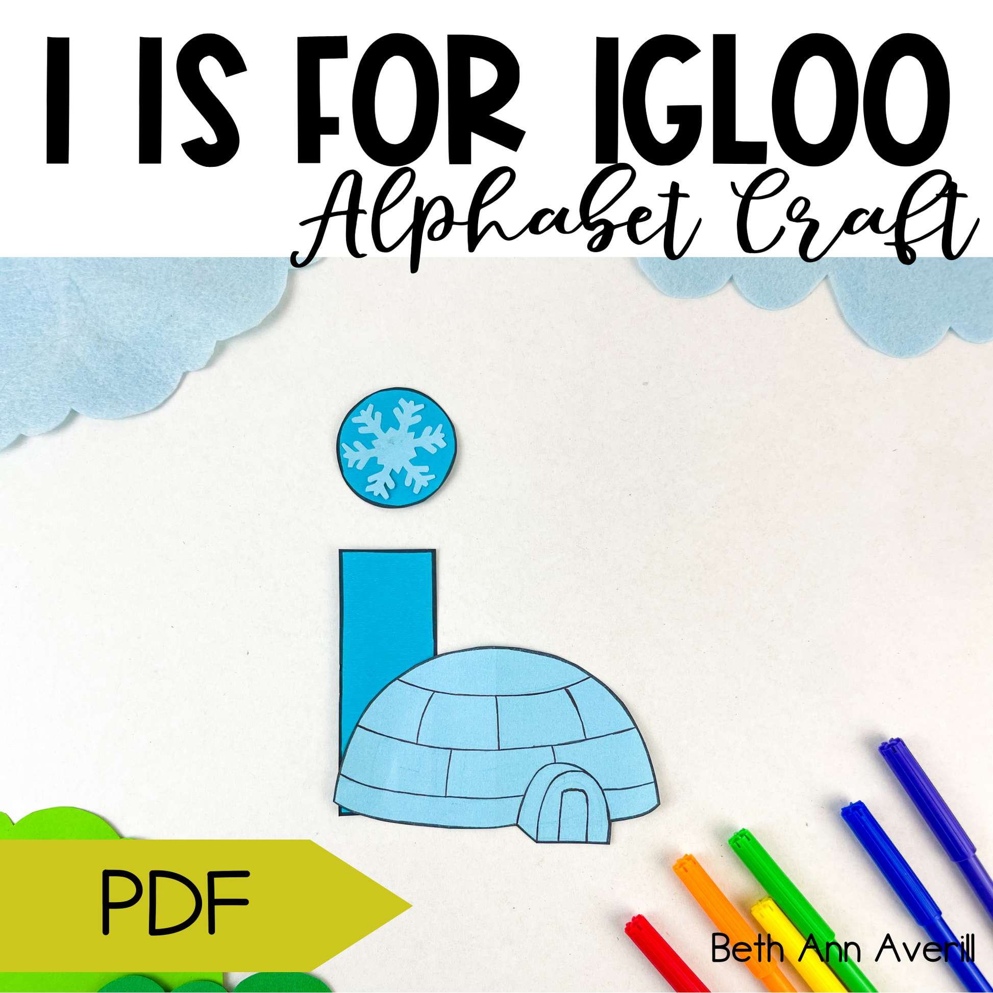 - PDF with a visual tutorial of how to create an igloo craft out of a lowercase letter i.
