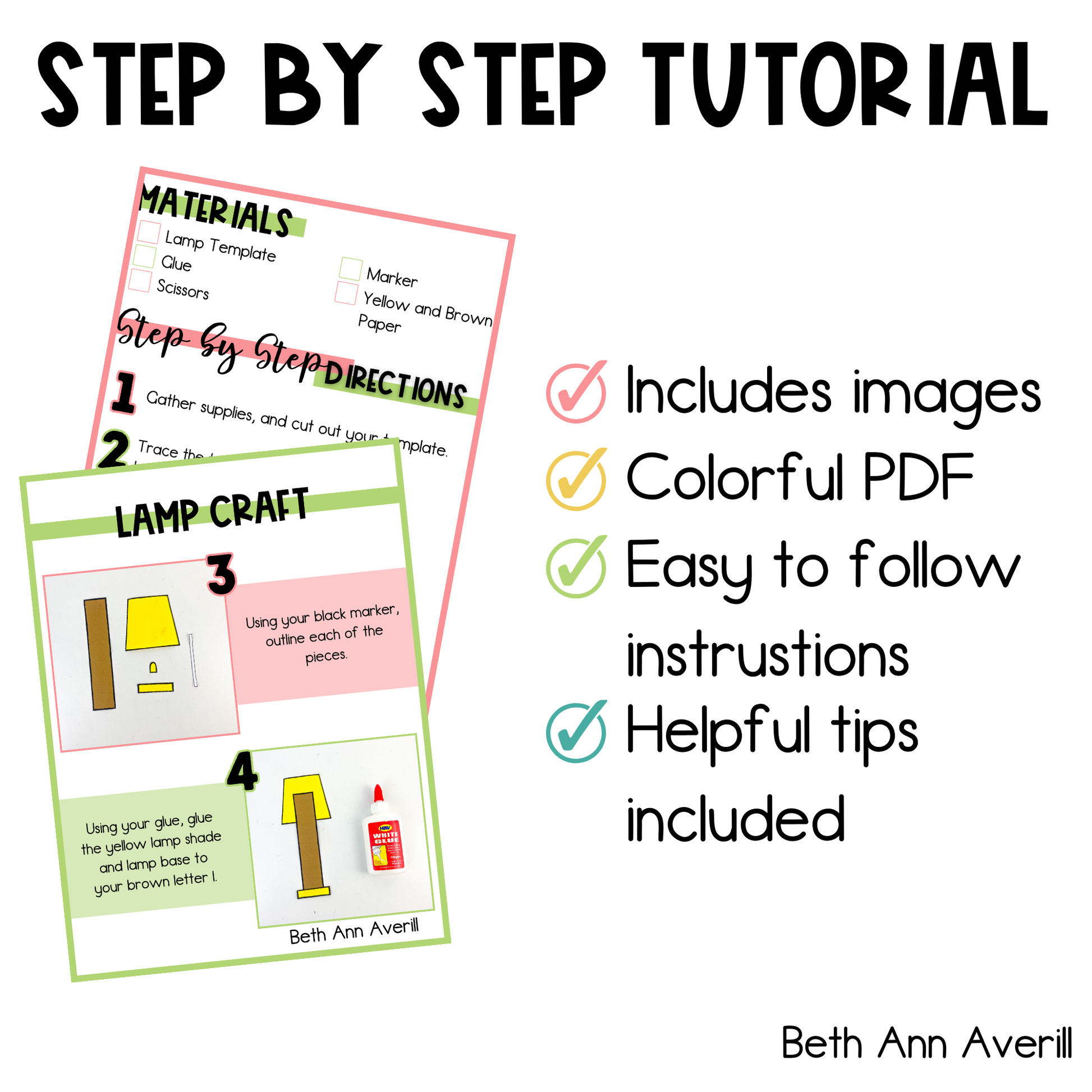 - PDF with a visual tutorial of how to create a lamp craft out of a lowercase letter l.