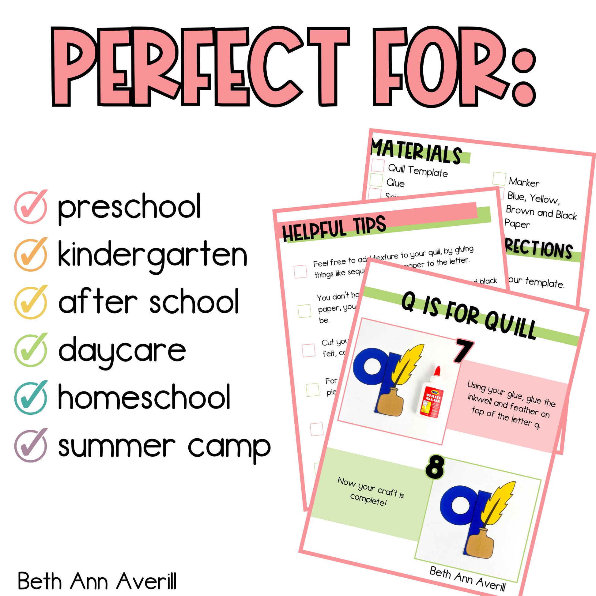 - Preschool teachers looking for a fun and educational craft activity that focuses on fine motor skills, creativity, and the alphabet.