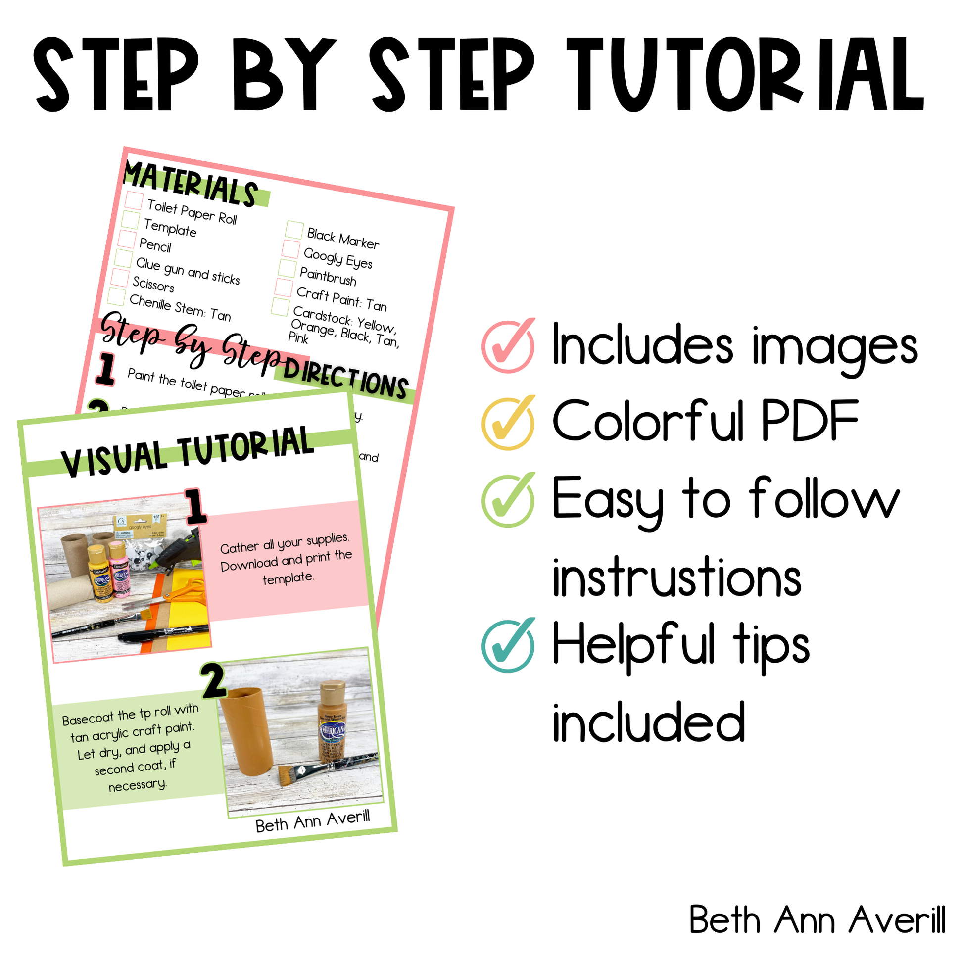 A PDF with clear, step-by-step visual instructions for creating a lion character from a toilet paper roll