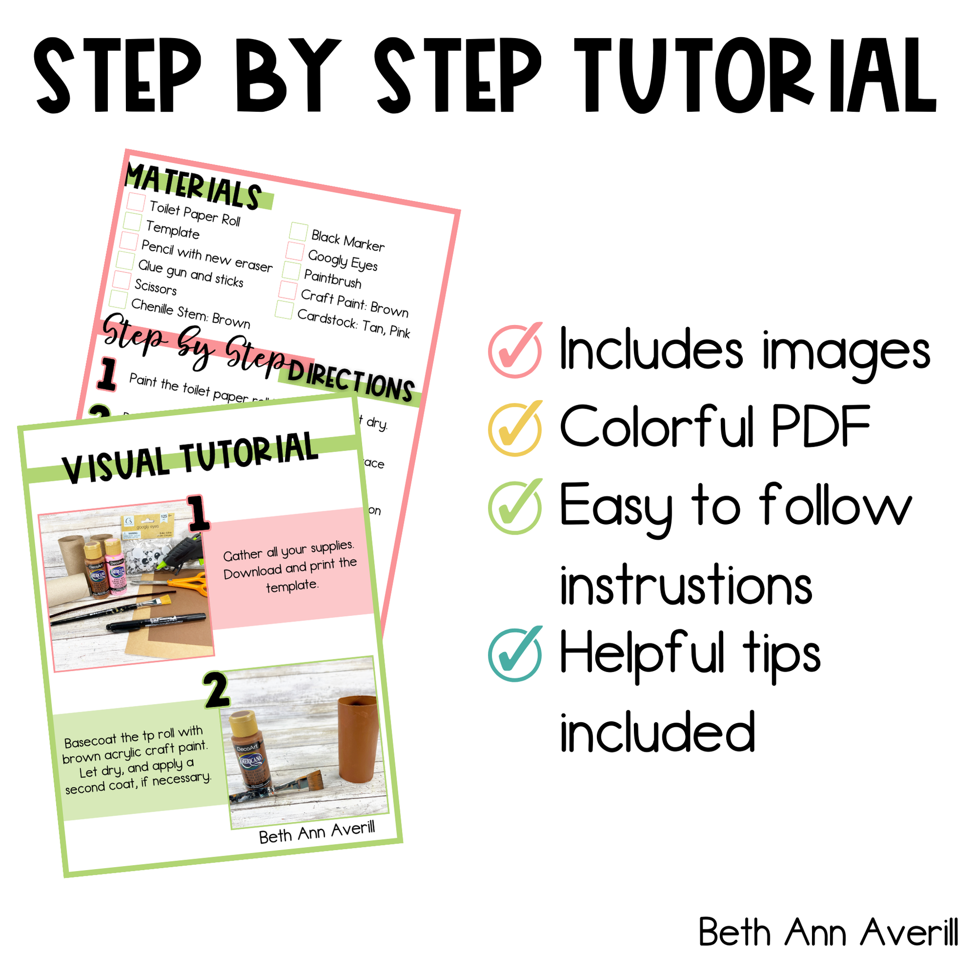 A PDF with clear, step-by-step visual instructions for creating a monkey character from a toilet paper roll