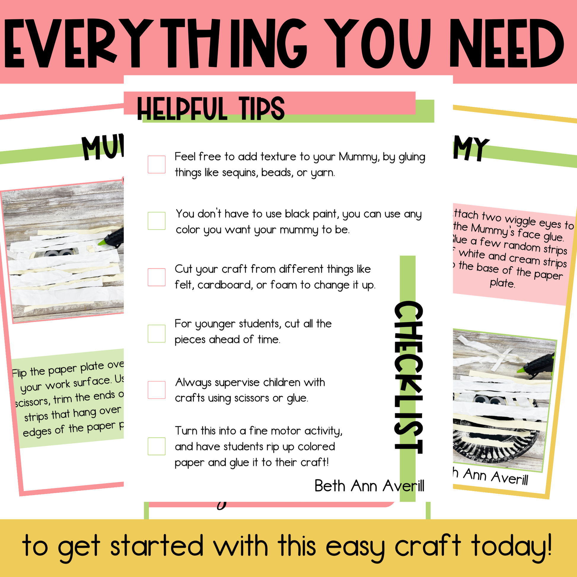 - A PDF with clear, step-by-step visual instructions for creating a mummy character from a paper plate