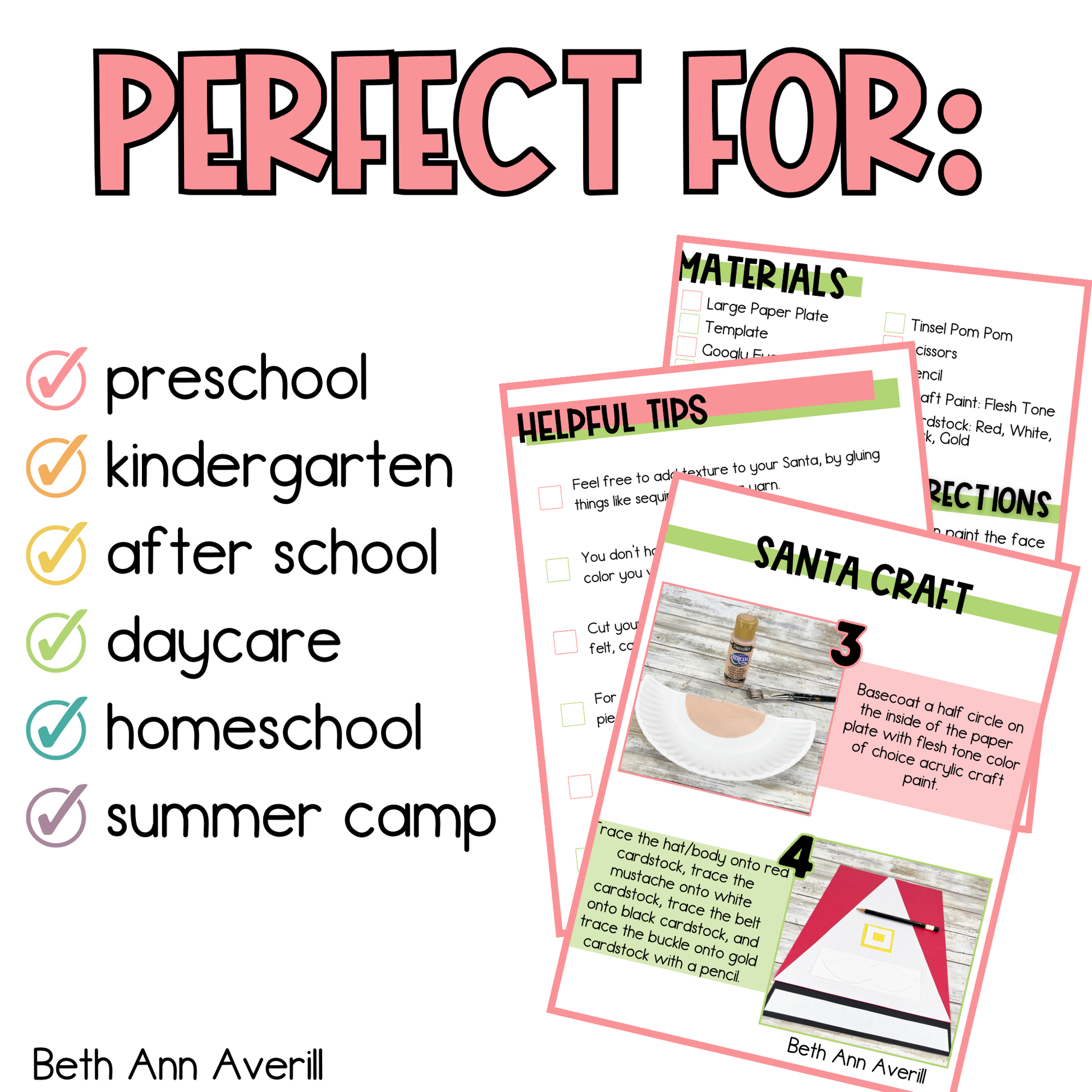 Designed with busy teachers in mind, this low prep project uses simple materials and clear, easy to follow steps. The finished Santas make an adorable bulletin board display or a festive take home keepsake.