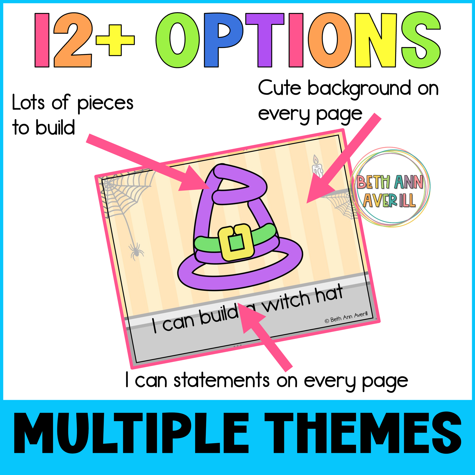 This fun fine motor activity set includes 12+ unique play dough mats sets, each featuring a different themed collections with between 10 and 30 different cards.