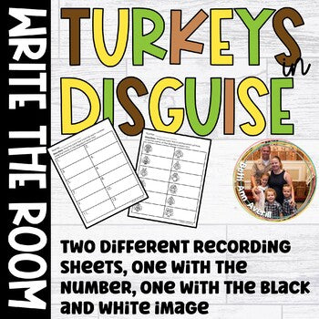 - Two unique recording sheets, one is just the number of the turkey, the other has a little miniature turkey in black and white for them to write the name next to.