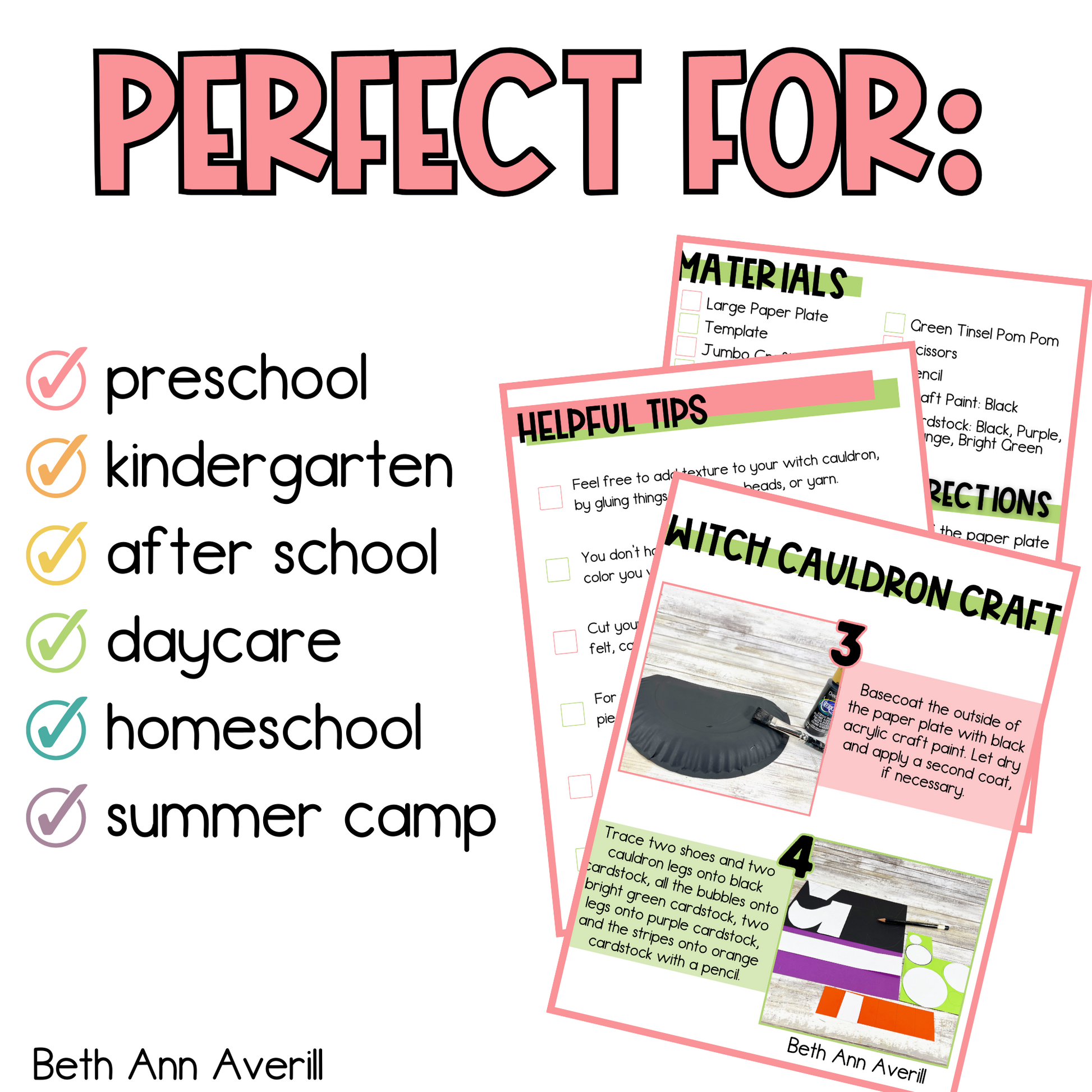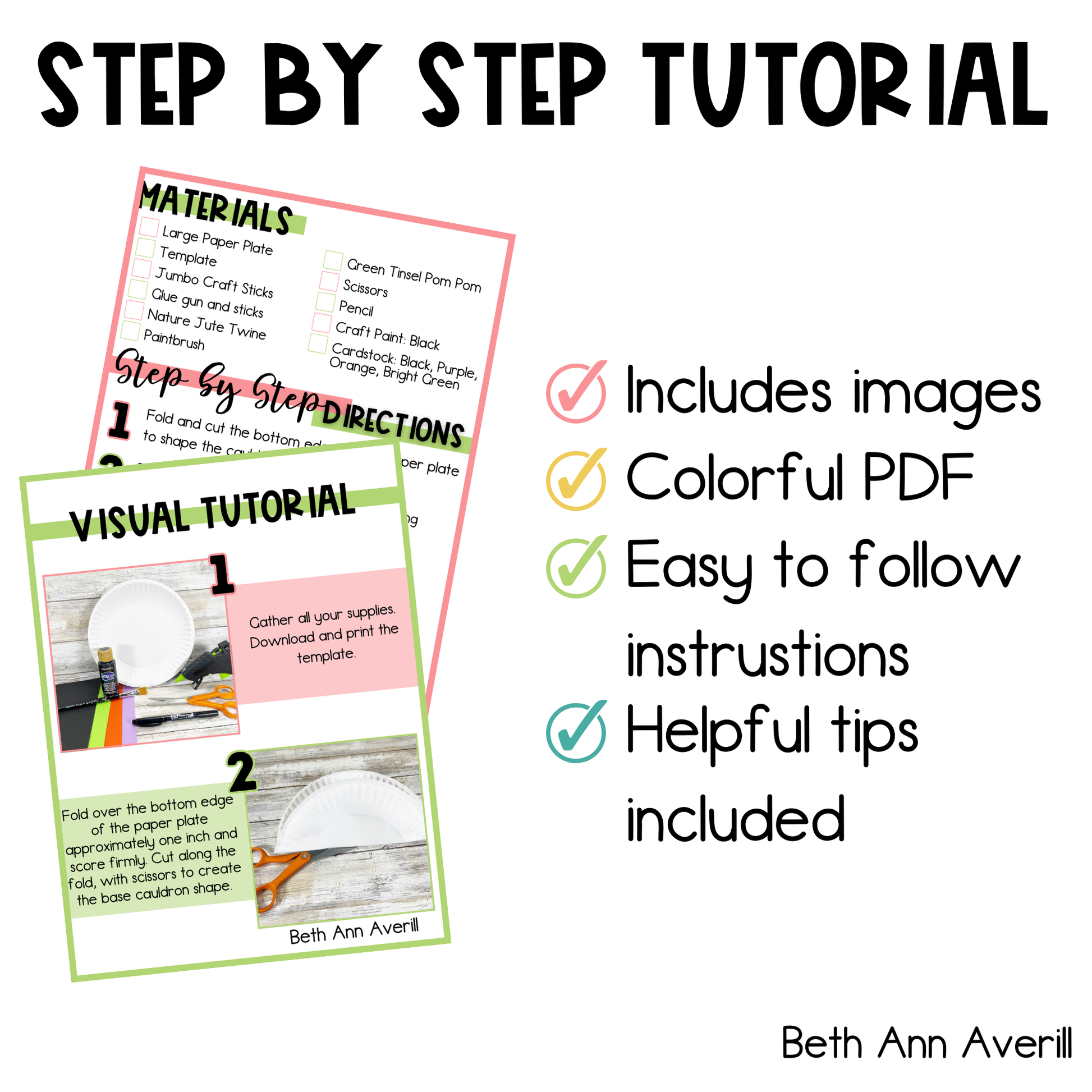 - A PDF with clear, step-by-step visual instructions for creating a witch-in-a-cauldron character from a paper plate